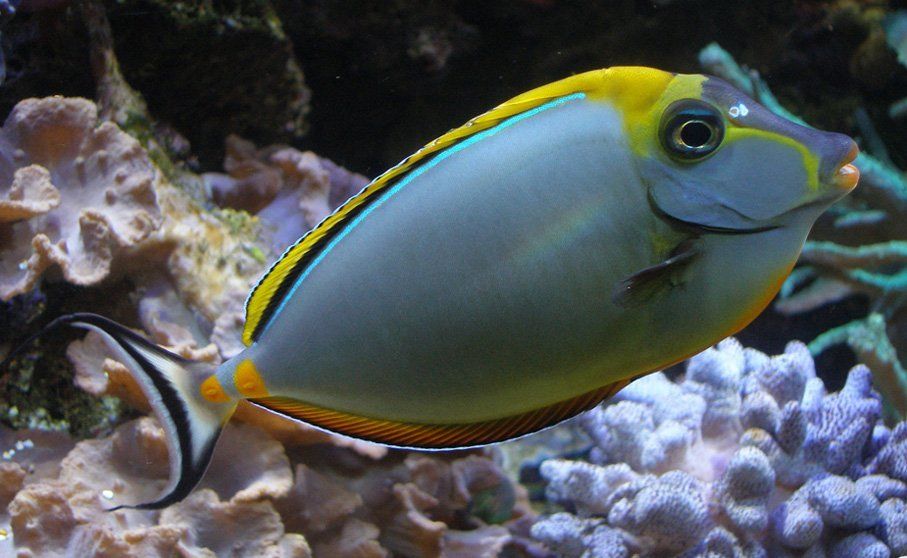 Der Zebrasoma flavescens kann bis zu 18 cm groß werden und kommt überwiegend in den Regionen vor Hawaii und Japan vor. Er ist einer der meistgekauften Doktorfische vor allem bei Anfänger, da er als nicht sehr heikel gilt, was wir nur bestätigen können. Er ist schnell im Aquarium etabliert und lässt die anderen Fische in Ruhe da er überhaupt sich streitsüchtig ist und die meiste Zeit durch das Becken „joggt“. Möchte man allerdings ein Pärchen haben, sollten gleich zwei eingesetzt werden, denn wohnt er einmal geraume Zeit alleine im Aquarium möchte er auch keinen Konkurrenten mehr haben und reagiert dann etwas unleidlich und biestig. Doch auch das gibt sich wieder mit der Zeit nachdem er festgestellt hat, dass der andere jetzt doch nicht mehr auszieht.